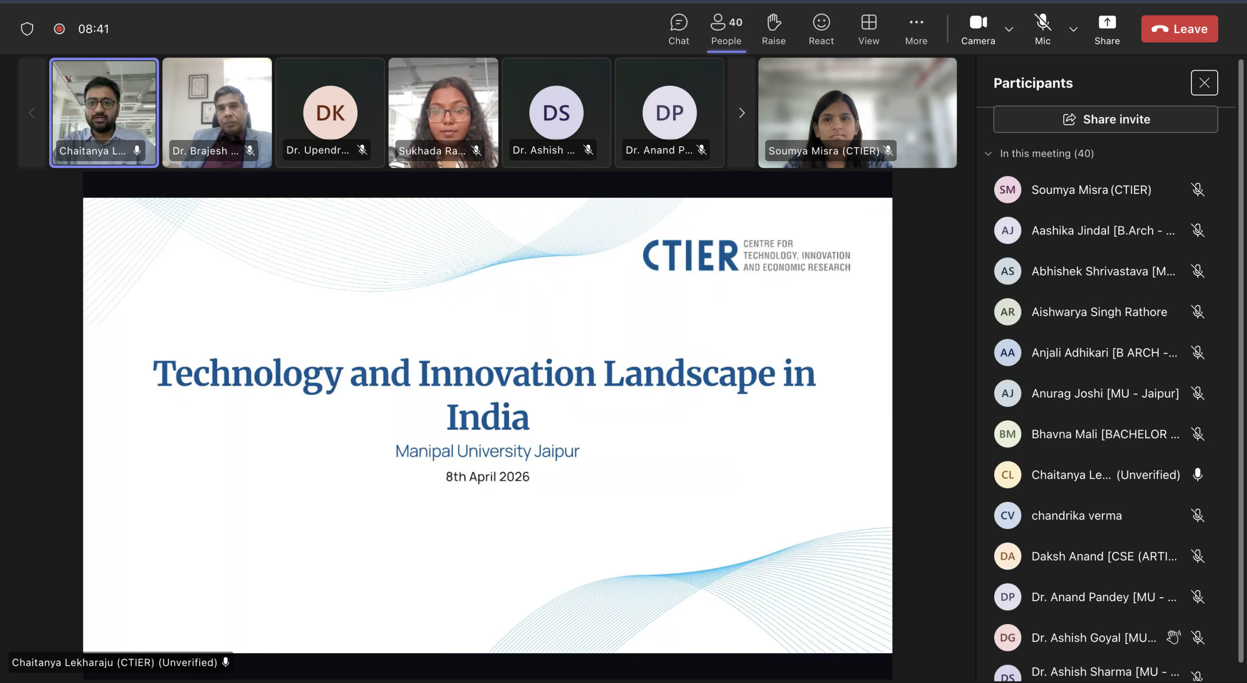 CTIER team conducted an outreach session on the CTIER Handbook: Technology and Innovation in India at Manipal University Jaipur (MUJ). The session brought together a curious and engaged group of students for a wide-ranging conversation on some of the Handbook’s core themes, from India’s innovation ecosystem and the role of industrial R&D, to the shifting dynamics of global innovation leadership.
