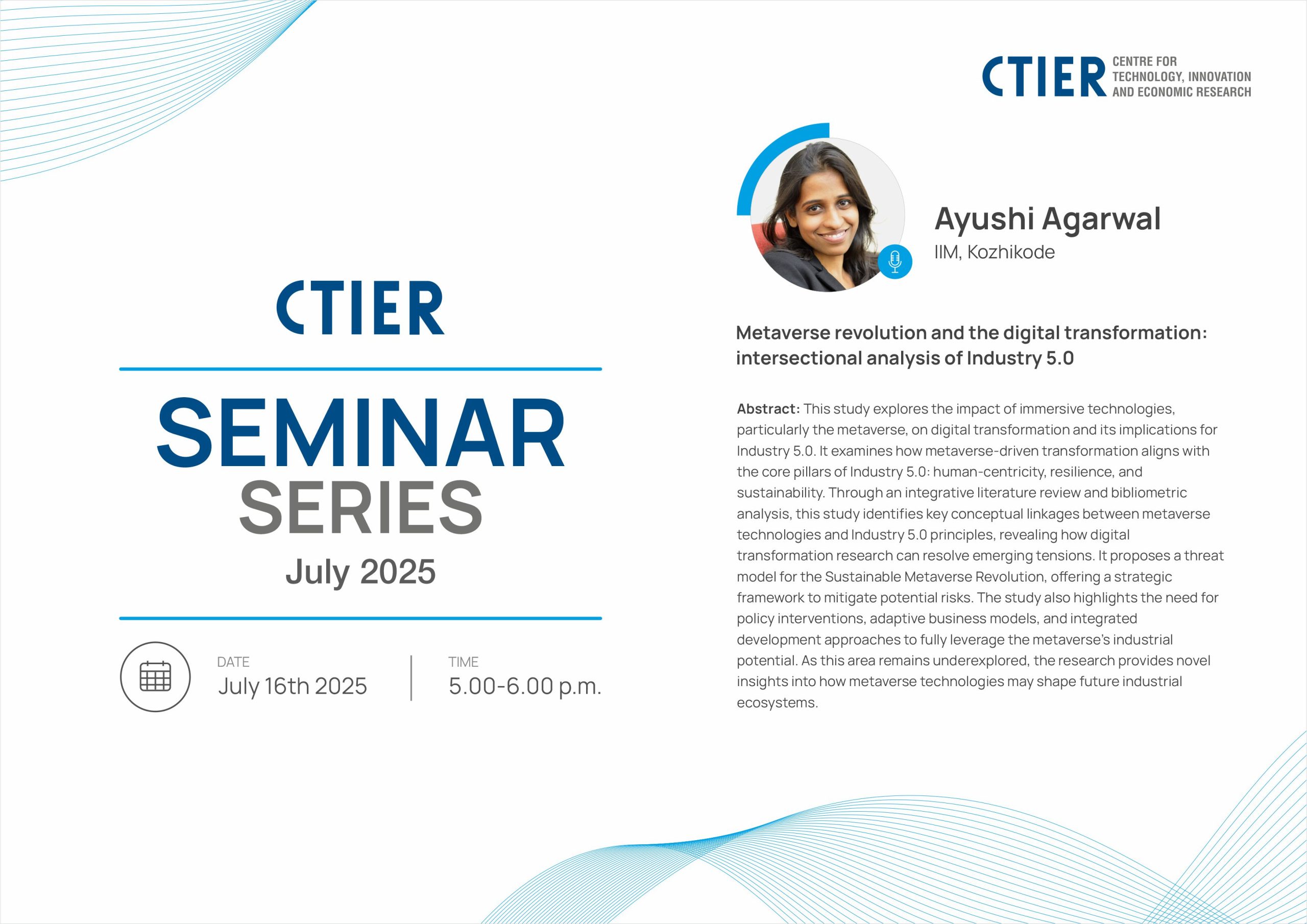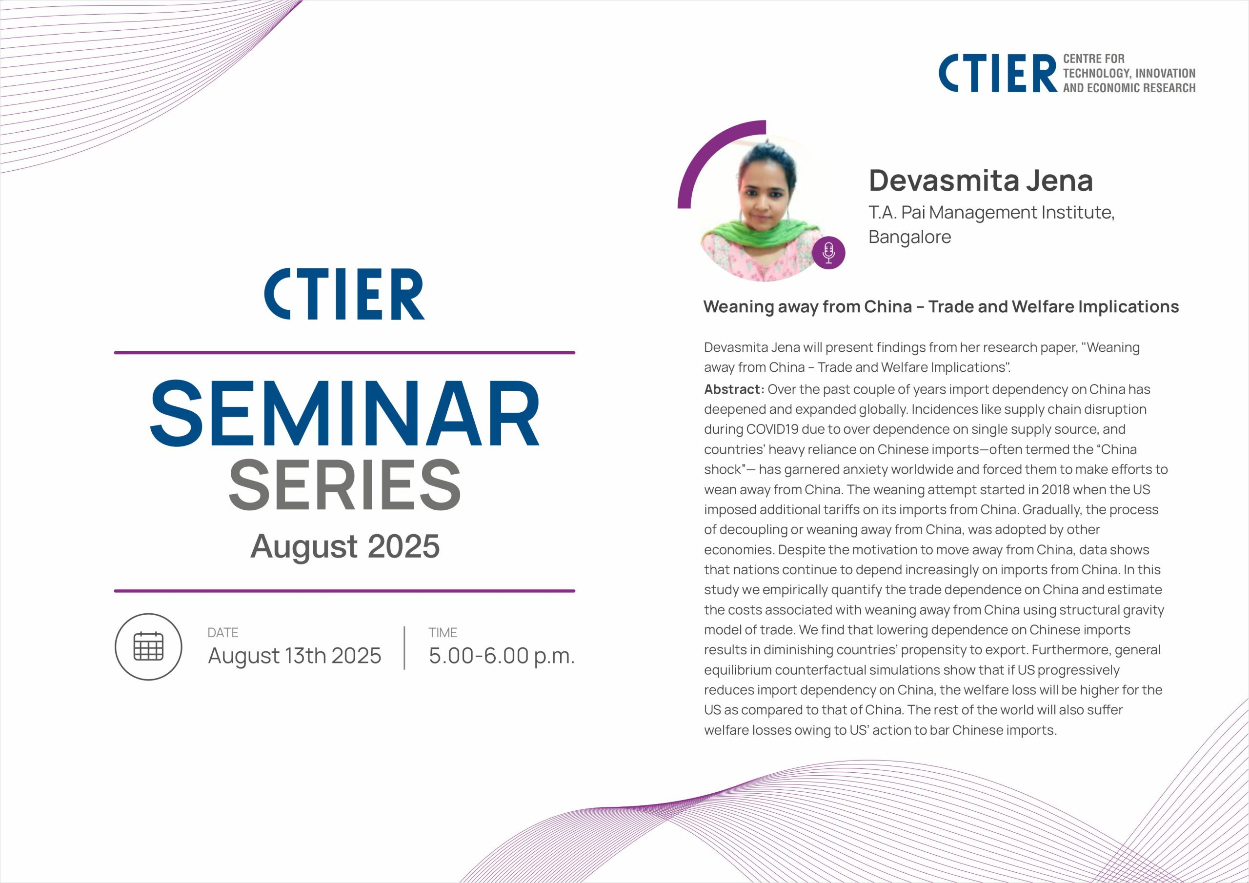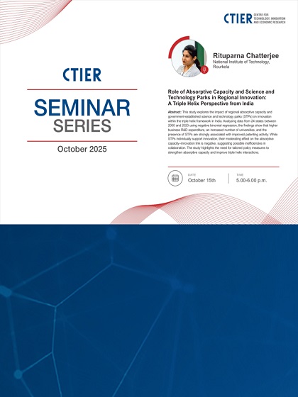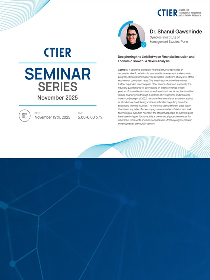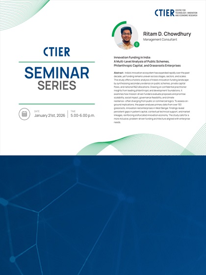 Anshu Sing from National Institute of Technology, Rourkela presented her work at the CTIER Seminar Series.